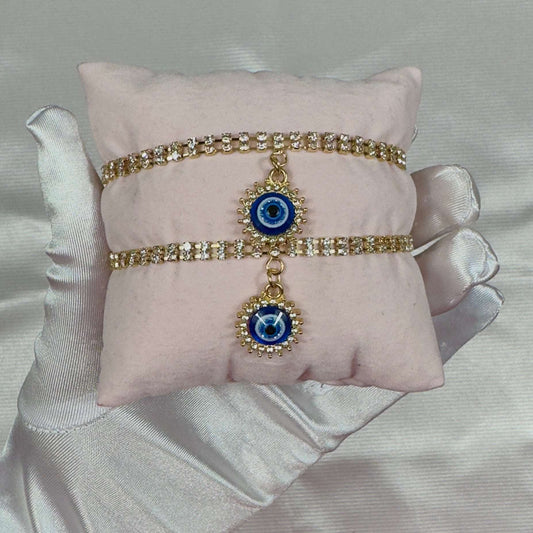 'Ayla' - Gold Zircon Embellished Evil Eye Bracelet