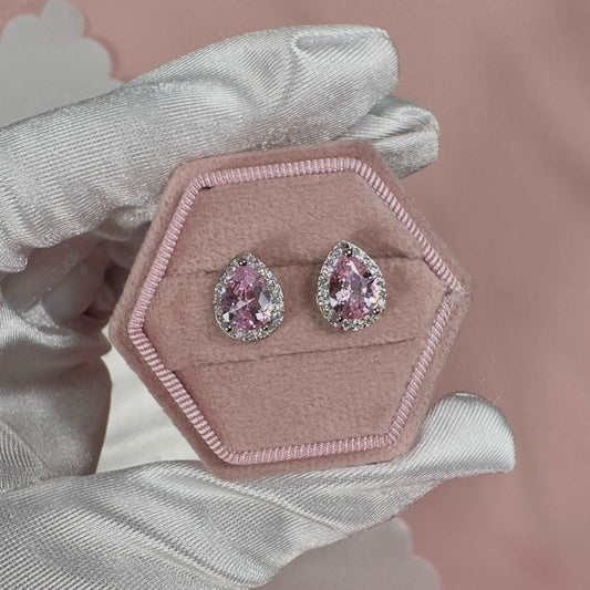 'Lila' - 925 Sterling Silver Zirconia Teardrop Halo Stud Earrings