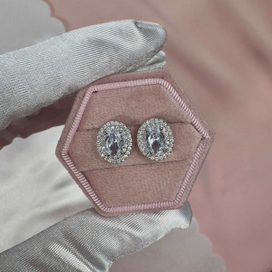 'Ela' - 925 Sterling Silver Zirconia Oval Halo Shaped Stud Earrings