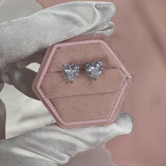 'Rena' - 925 Sterling Silver Crystal Heart Stud Earrings