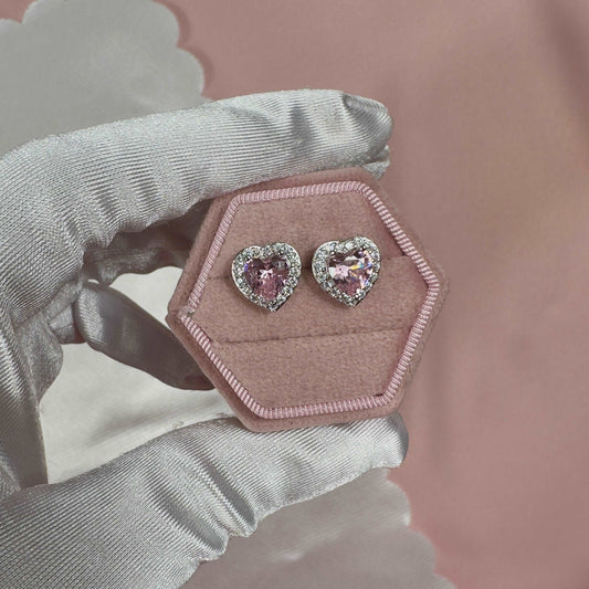'Amor' - 925 Sterling Silver Zirconia Heart Halo Stud Earrings