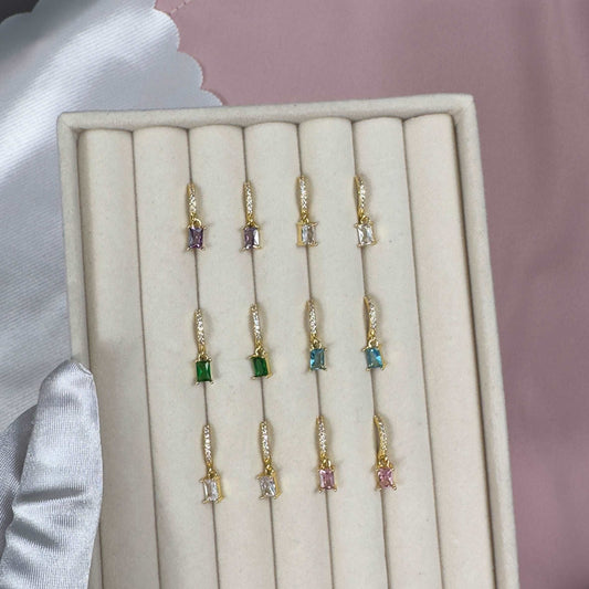'Alanna' - 18k Gold Plated Zircon Crystal Dangle Huggie Earrings
